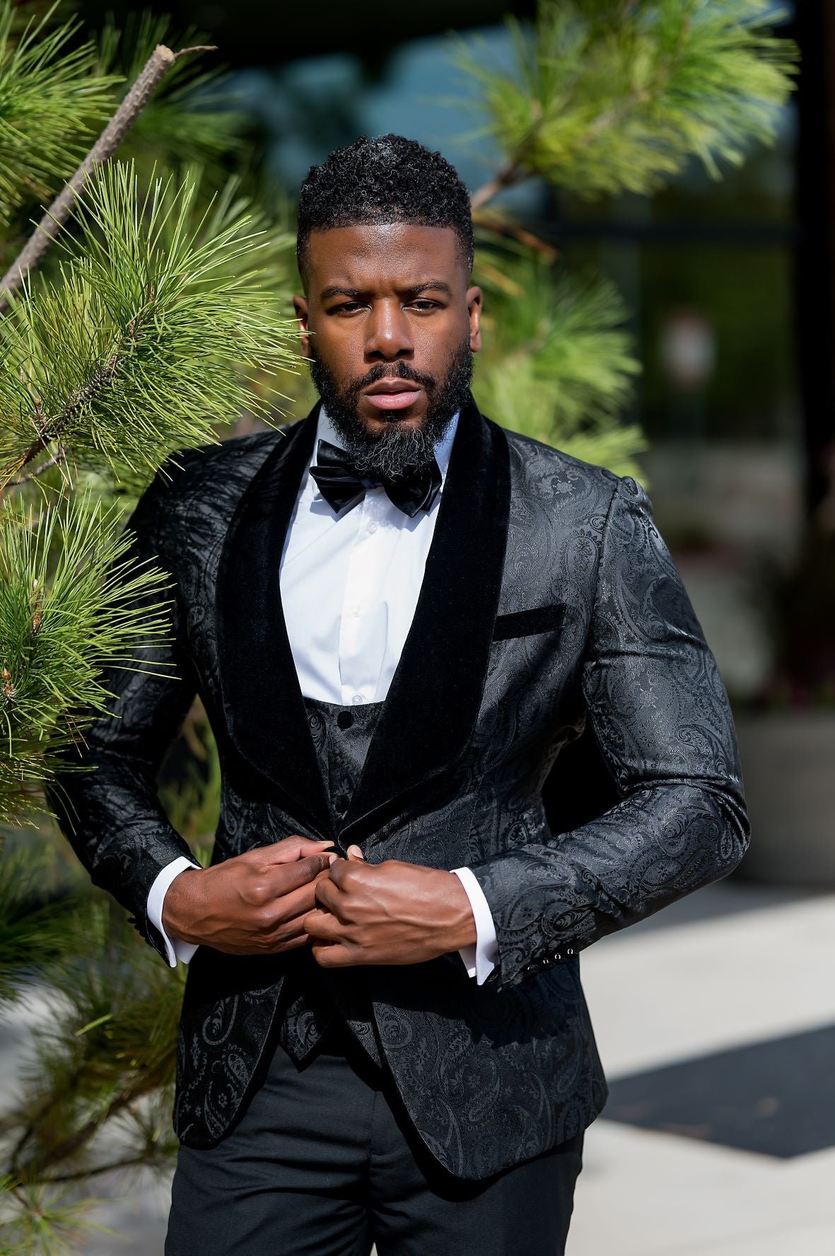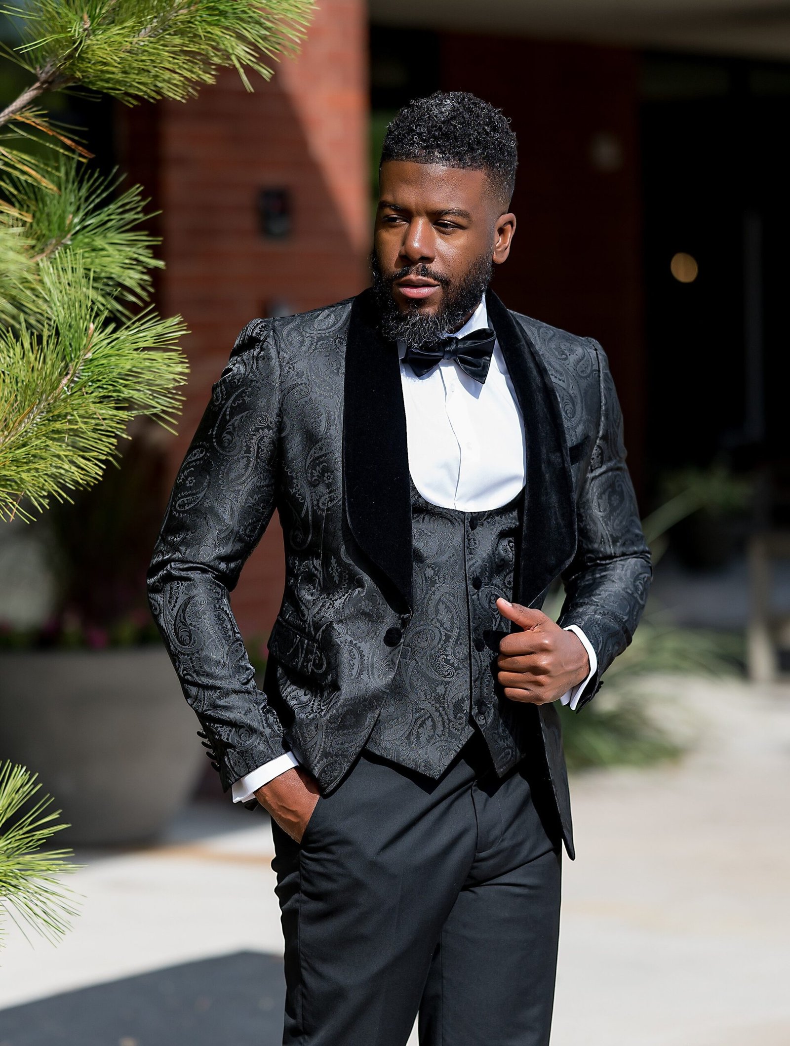Be the first to review “Black Paisley Velvet Delight – 3 Piece Tuxedo” Cancel reply
