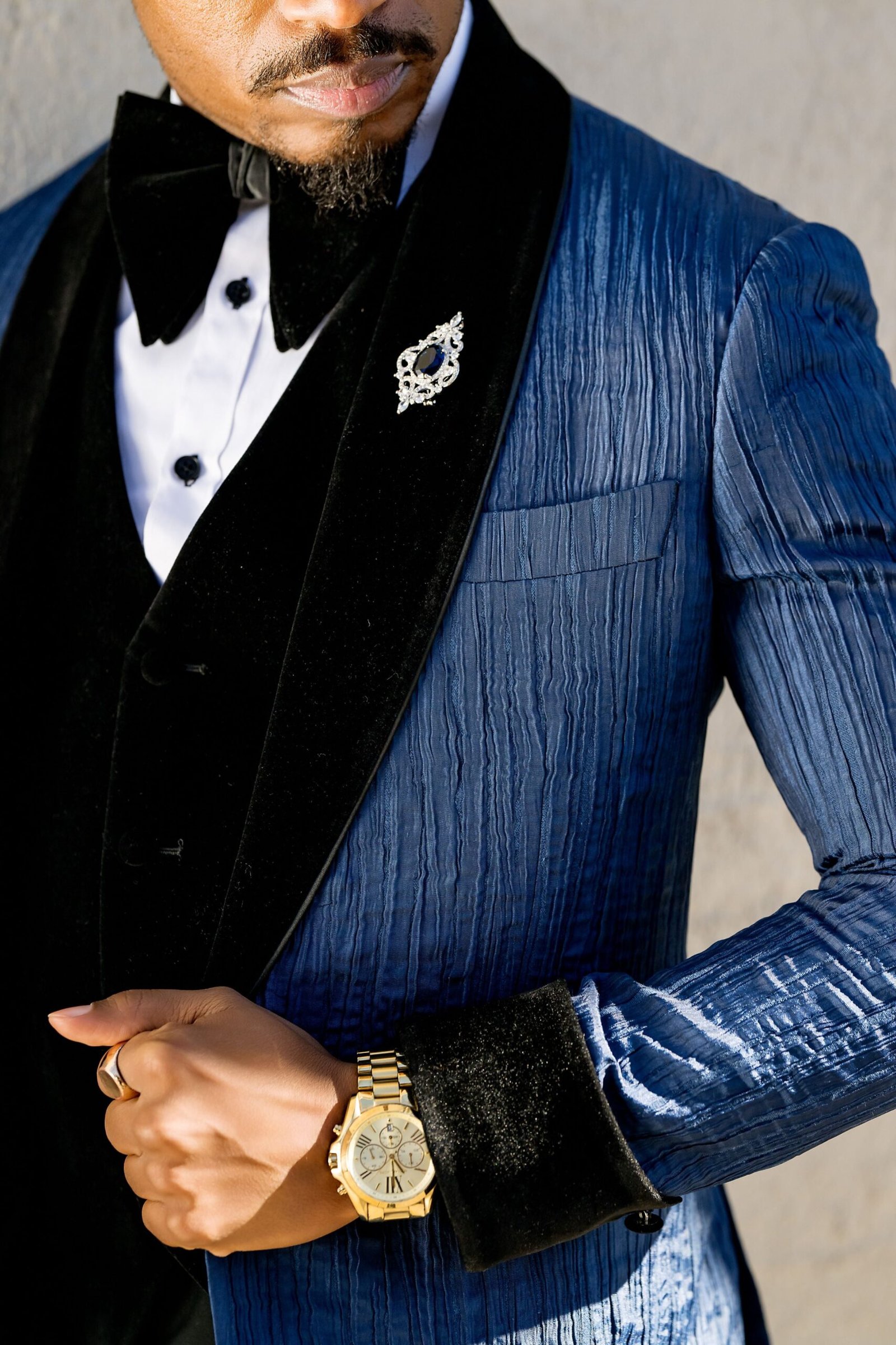• Paired with sleek black vest, and trousers for a cohesive formal ensemble.