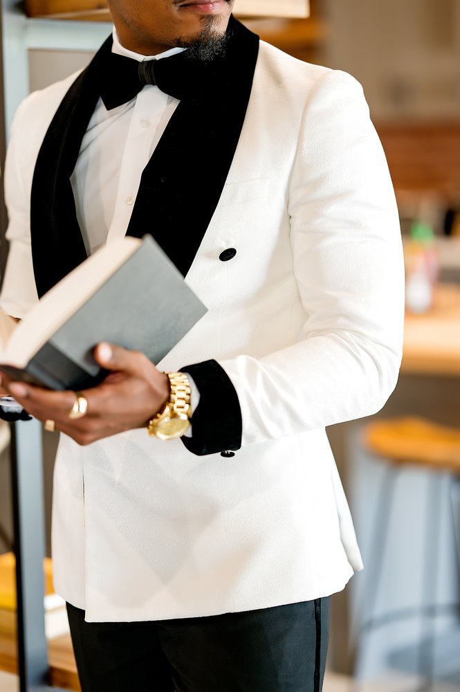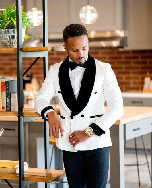 July 31, 2025Off White Double Breasted Tuxedo with Velvet Lapel